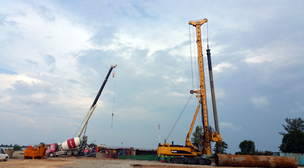 文萊PMB跨海大橋首根試樁鉆孔直徑1.5m,鉆孔深度68.6m,灌注混凝土120方。試樁內(nèi)裝有“荷載箱”兩組,鋼筋應(yīng)力計52組。通過技術(shù)攻關(guān),首根試樁的鉆孔垂直度、泥漿參數(shù)、沉渣厚度等指標(biāo)均滿足歐標(biāo)要求,順利通過總包、監(jiān)理驗(yàn)收。尤其是混凝土灌注施工,有了鉆孔質(zhì)量的保證,混凝土灌注導(dǎo)管自由的在布設(shè)有兩組關(guān)卡的“荷載箱”內(nèi)安放、提拔,獲得了總包方和監(jiān)理方稱贊,監(jiān)理工程師向我們豎起了大拇指。我們以一流的管理、先進(jìn)的設(shè)備、精湛的技術(shù),進(jìn)一步擦亮了“河北建勘”品牌。
