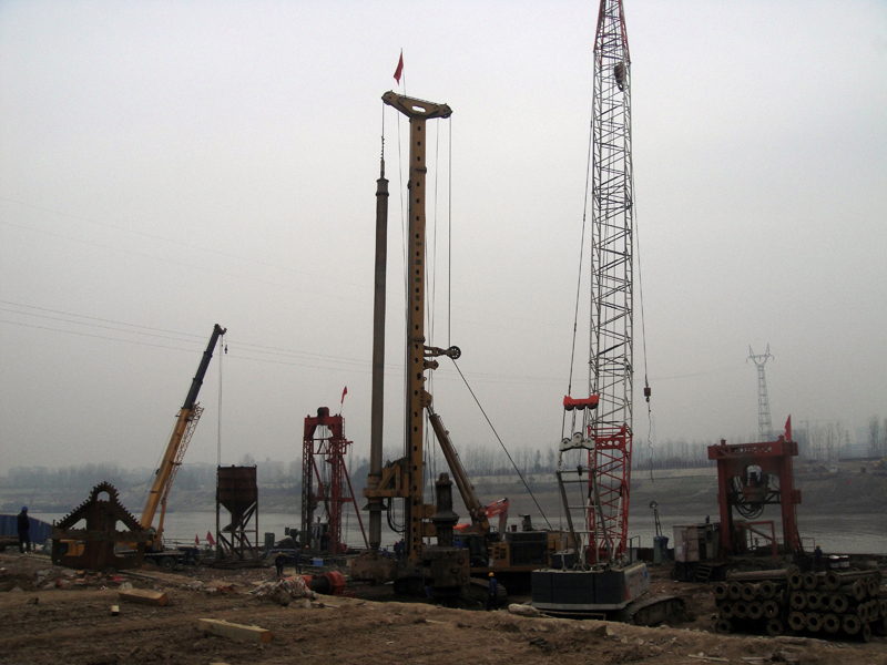 江漢六橋的2#、3#、4#墩臺(tái)基樁。每個(gè)橋墩分別采用兩個(gè)承臺(tái)承重,灌注樁皆為嵌巖樁,樁徑為1.8m與2.2m,樁長(zhǎng)90~110m,本工程共計(jì)46根鉆孔灌注樁,完成混凝土灌注方量20000余方。