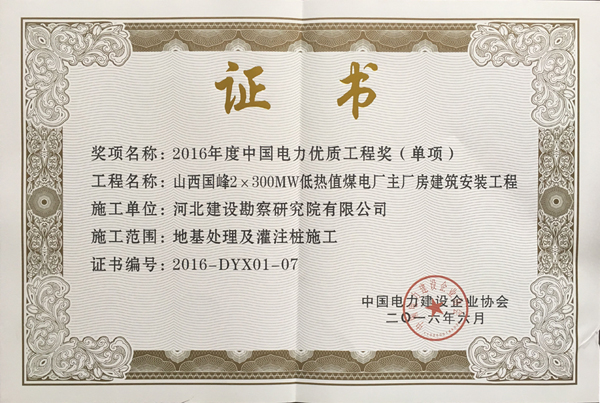 近日,我公司承建的山西國峰2x300MW低熱值煤綜合利用電廠項目獲得2016年度中國電力優(yōu)質(zhì)工程獎。公司領(lǐng)導(dǎo)早在項目施工期間就高度關(guān)注此項目的評優(yōu)工作,對工程施工質(zhì)量、工程資料整理要求極為嚴(yán)格,項目施工結(jié)束后,積極配合中國電力建設(shè)企業(yè)協(xié)會完成工程獎申報資料預(yù)審、現(xiàn)場復(fù)查等各項程序,最終入選中國電力優(yōu)質(zhì)工程獎。