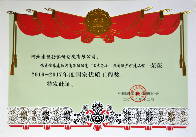 近日,由中國(guó)施工企業(yè)管理協(xié)會(huì)組織的2016-2017年度第一批國(guó)家優(yōu)質(zhì)工程獎(jiǎng)評(píng)審會(huì)在北京隆重召開(kāi)。國(guó)家工程建設(shè)質(zhì)量獎(jiǎng)評(píng)審組聽(tīng)取了2016-2017年度第一批國(guó)家優(yōu)質(zhì)工程獎(jiǎng)評(píng)審工作報(bào)告和專家組長(zhǎng)對(duì)參評(píng)項(xiàng)目復(fù)查情況的匯報(bào),對(duì)參評(píng)項(xiàng)目進(jìn)行了綜合評(píng)議、質(zhì)詢答辯和記名投票,確定了2016-2017年度第一批國(guó)家優(yōu)質(zhì)工程獎(jiǎng)候選項(xiàng)目。我公司參建的新疆華電喀什熱電有限責(zé)任公司的2X350MW熱電聯(lián)產(chǎn)工程、河南洛陽(yáng)陽(yáng)光“上大壓小”熱電聯(lián)產(chǎn)熱電工程最終通過(guò)評(píng)審榮獲了國(guó)家優(yōu)質(zhì)工程獎(jiǎng)。