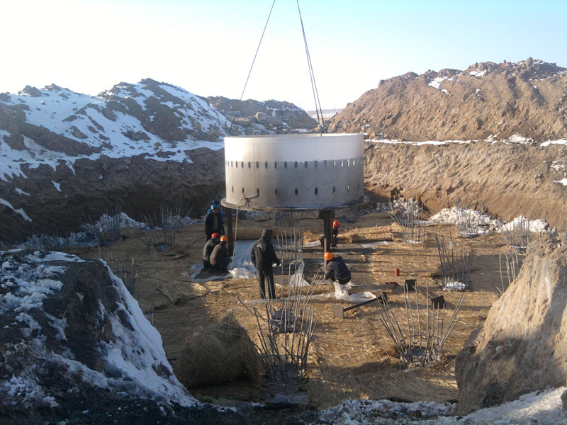 本期規(guī)劃容量為51MW,共包括841根Φ800mm鉆孔灌注樁,34臺風(fēng)機(jī)承臺基礎(chǔ)和箱變基礎(chǔ),混凝土總工程量為26200方,土方開挖和回填40000方。涉及多方交叉作業(yè)。
