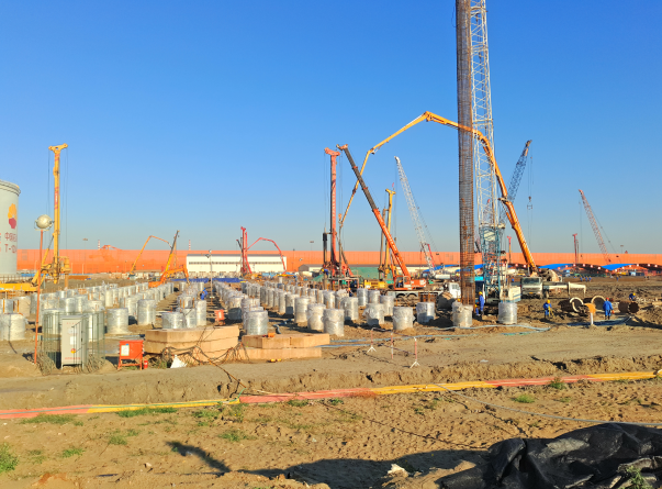 該工程于2017年8月25日開(kāi)工,截止2017年11月14日完成全部施工任務(wù)。共完成高承臺(tái)鉆孔灌注樁720根,直徑1200mm,理論方量56904.6m3,土方開(kāi)挖及碎石回填 43610 m3。