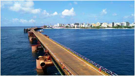 中馬友誼大橋位于馬爾代夫北馬累環(huán)礁(North Malé Atoll),跨越Gaadhoo Koa海峽,連接環(huán)礁上馬累島、機(jī)場(chǎng)島(瑚湖爾島)兩個(gè)相鄰島嶼,是馬爾代夫重要的島嶼連接線工程。項(xiàng)目起點(diǎn)位于馬累島東南角,順接規(guī)劃Boduthakurufaanu Magu道路,隨后設(shè)置橋梁跨越Gaadhoo Koa 海峽,在機(jī)場(chǎng)島南段登陸,大橋接線與機(jī)場(chǎng)到Hulhumale 規(guī)劃路順接,全橋長(zhǎng)度2km,雙向四車道,由橋梁、引堤、道路等工程組成,主橋?yàn)橹骺?80m混合疊合梁連續(xù)鋼構(gòu)橋,引橋?yàn)樯w梁混凝土預(yù)制梁橋。項(xiàng)目采用中國(guó)公路工程規(guī)范標(biāo)準(zhǔn),設(shè)計(jì)使用壽命100年。
