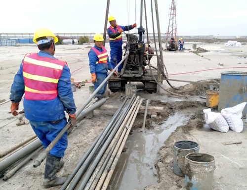 本項(xiàng)目采用了鉆探、靜力觸探試驗(yàn)、標(biāo)準(zhǔn)貫入試驗(yàn)、波速測(cè)試等原位測(cè)試手段,并結(jié)合室內(nèi)巖土試驗(yàn),準(zhǔn)確的查明了地基土的空間分布特征,評(píng)價(jià)了地基土的固結(jié)狀態(tài)特性和導(dǎo)電特性,全面綜合分析了地基土的特殊性質(zhì);采用孔內(nèi)激發(fā)測(cè)試剪切波,和強(qiáng)震源地面激發(fā)孔內(nèi)測(cè)試縱波相結(jié)合的方式,實(shí)現(xiàn)了波速測(cè)井設(shè)備的輕便化,同時(shí)彌補(bǔ)了地面激發(fā)震源能量不足測(cè)深較深時(shí)無法測(cè)出波速的問題,并科學(xué)合理的提供了動(dòng)力設(shè)計(jì)參數(shù);單樁承載力分析中,評(píng)價(jià)了吹填土固結(jié)對(duì)樁基產(chǎn)生的下拉荷載影響,綜合給定單樁承載力特征值,結(jié)合儲(chǔ)罐樁基屬超長(zhǎng)大直徑灌注樁和場(chǎng)地土層工程特性,對(duì)樁基設(shè)計(jì)和施工工藝提出了針對(duì)性建議。