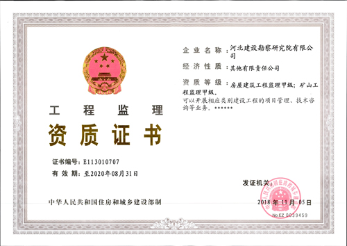公司獲得礦山工程監(jiān)理甲級資質(zhì)證書