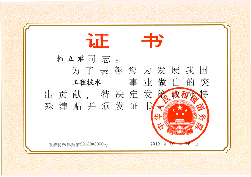 公司董事長(zhǎng)韓立君入選國(guó)務(wù)院政府特殊津貼專家