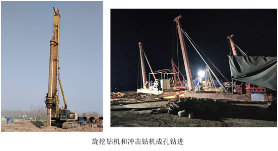 本工程主要包括從黃河左岸大堤位置起,大橋主橋17#、18#和19#墩三個(gè)墩的樁基工程,主要工作內(nèi)容為:成孔、水下混凝土灌注和配合樁基檢測。自2018年11月22日開工,2019年5月19日全面竣工,共計(jì)179天,投入旋挖鉆機(jī)TR360D 1臺,沖擊鉆機(jī)6臺,空壓機(jī)1臺,泥漿處理器1臺。施工完成后,經(jīng)相關(guān)單位檢測和驗(yàn):本工程鉆孔成孔深度、成孔直徑符合設(shè)計(jì)要求;入巖深度和巖石強(qiáng)度符合設(shè)計(jì)要求;樁基超聲波檢測合格率100%,優(yōu)良率100%。