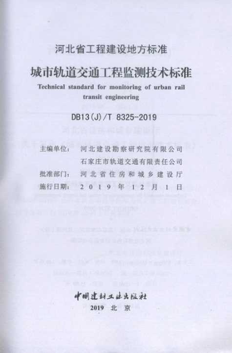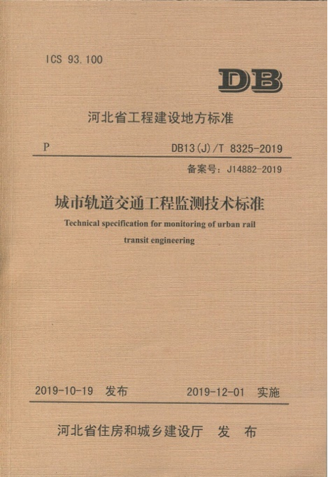 近日我公司主編的河北省工程建設(shè)地方標(biāo)準(zhǔn)《城市軌道交通工程監(jiān)測(cè)技術(shù)標(biāo)準(zhǔn)》(DB13(J)/T8325-2019)由河北省住房和城鄉(xiāng)建設(shè)廳發(fā)布,于2019年12月1日起實(shí)施,正式出版發(fā)行。這是由我公司主編發(fā)行的第11項(xiàng)地方標(biāo)準(zhǔn)。