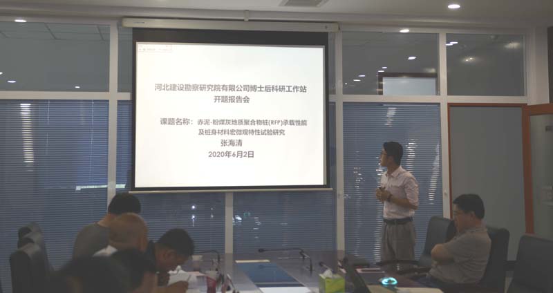 2020年6月2日下午,公司博士后工作站舉辦博士后研究人員張海清的開題報告會。由博士后工作站站長聶慶科正高級工程師、河北省建筑科學(xué)研究院副院長王維玉正高級工程師、北京交通大學(xué)白冰教授、河北科技大學(xué)張亞通教授、河北省生態(tài)環(huán)境廳謝劍鋒正高級工程師組成專家組,對張海清博士研究的《赤泥-粉煤灰地質(zhì)聚合物樁(RFP)承載性能及樁身材料宏微觀特性試驗研究》開題報告進(jìn)行了評審,公司總經(jīng)理李華偉、省人力資源和社會保障廳、市人力資源和社會保障局有關(guān)領(lǐng)導(dǎo)參加了報告會。