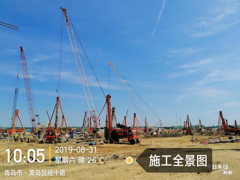 本工程投入管理人員、施工人員350余人、施工設備為沖擊鉆機54臺,旋挖鉆機2臺,鏟車3臺,挖掘機8臺,拉漿車2臺,50T履帶式吊車3臺,70T履帶式吊車3臺,25T履帶式吊車3臺。自2019年8月21日開工至2019年12月16日完工;工期總計116日歷天。共完成樁基1218根。實際完成工作量35478.2m。