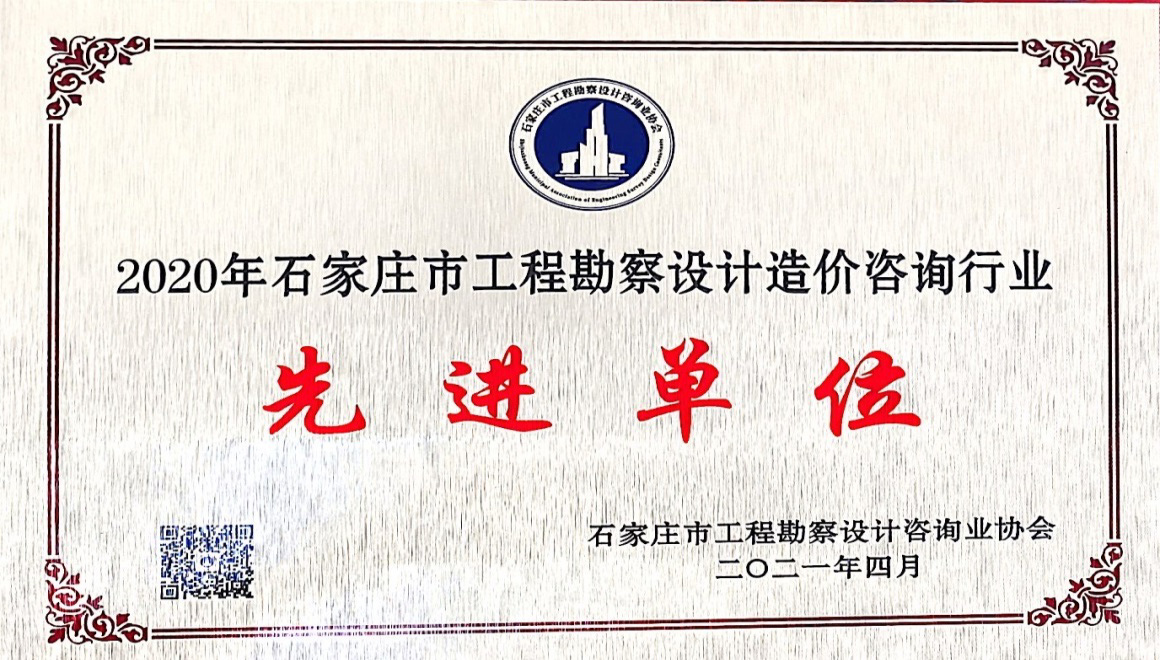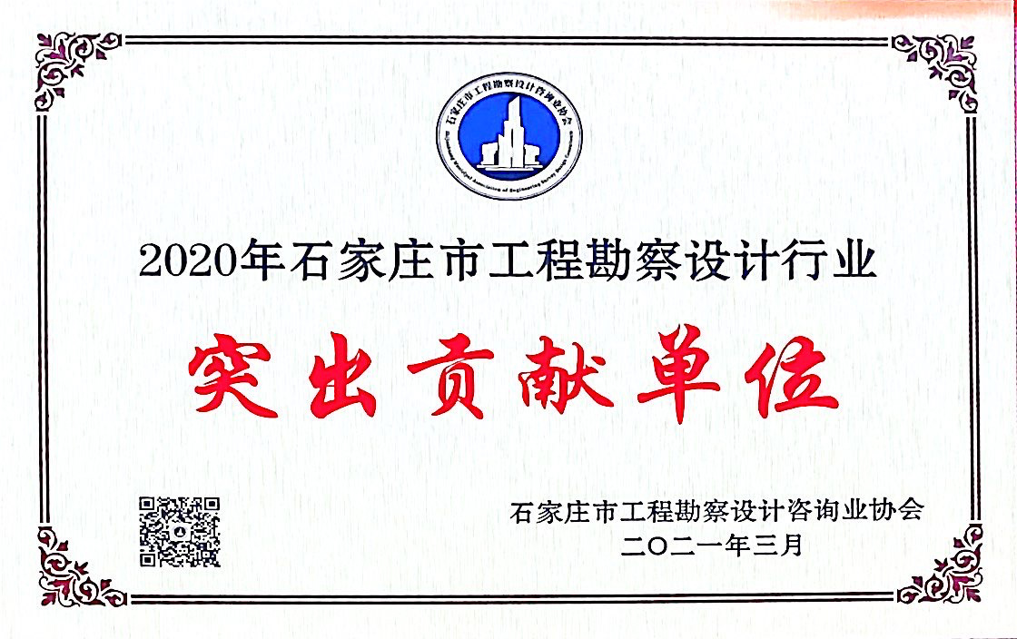 我公司憑借在勘察設(shè)計(jì)行業(yè)的杰出貢獻(xiàn)和企業(yè)綜合實(shí)力,榮獲由石家莊市工程勘察設(shè)計(jì)咨詢(xún)協(xié)會(huì)評(píng)選的“2020年石家莊市工程勘察設(shè)計(jì)行業(yè)突出貢獻(xiàn)單位”和“2020年石家莊市工程勘察設(shè)計(jì)造價(jià)咨詢(xún)行業(yè)先進(jìn)單位”兩項(xiàng)榮譽(yù)稱(chēng)號(hào)。公司獲此殊榮,充分彰顯了我公司在行業(yè)內(nèi)雄厚的綜合實(shí)力,進(jìn)一步奠定了行業(yè)排頭兵的地位。