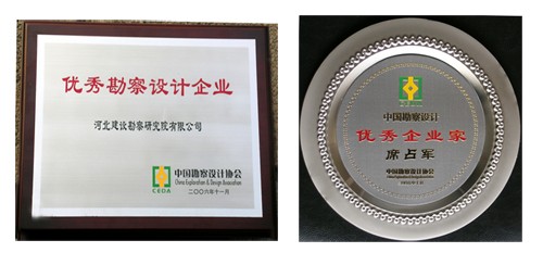 我公司喜獲中國(guó)勘察設(shè)計(jì)協(xié)會(huì)頒發(fā)的“優(yōu)秀勘察設(shè)計(jì)企業(yè)”榮譽(yù)稱(chēng)號(hào),董事長(zhǎng)席占軍獲“優(yōu)秀企業(yè)家”稱(chēng)號(hào)。