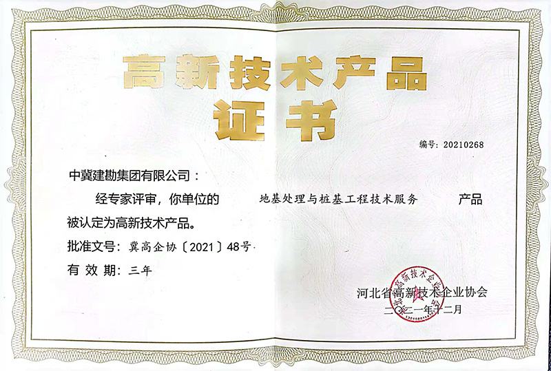 近日,河北省高新技術(shù)企業(yè)協(xié)會(huì)按照《河北省高新技術(shù)產(chǎn)品認(rèn)定實(shí)施細(xì)則》要求,經(jīng)組織專家評價(jià)、評審、認(rèn)定,我公司兩項(xiàng)技術(shù)“地基處理與樁基工程技術(shù)服務(wù)”和“巖土工程勘察設(shè)計(jì)技術(shù)服務(wù)”兩項(xiàng)技術(shù)服務(wù)榮獲“高新技術(shù)產(chǎn)品”稱號。本次榮獲“高新技術(shù)產(chǎn)品”稱號,標(biāo)志著擁有自主知識產(chǎn)權(quán)及核心技術(shù)的兩項(xiàng)服務(wù)產(chǎn)品得到了行業(yè)協(xié)會(huì)的認(rèn)可,進(jìn)一步提升了公司技術(shù)服務(wù)的品牌競效應(yīng)以及品牌的競爭力、影響力。同時(shí)“高新技術(shù)產(chǎn)品”是高新技術(shù)企業(yè)認(rèn)定的重要依據(jù)和加分項(xiàng),為公司2022年高新技術(shù)企業(yè)的期滿重新認(rèn)定打下了良好基礎(chǔ)。