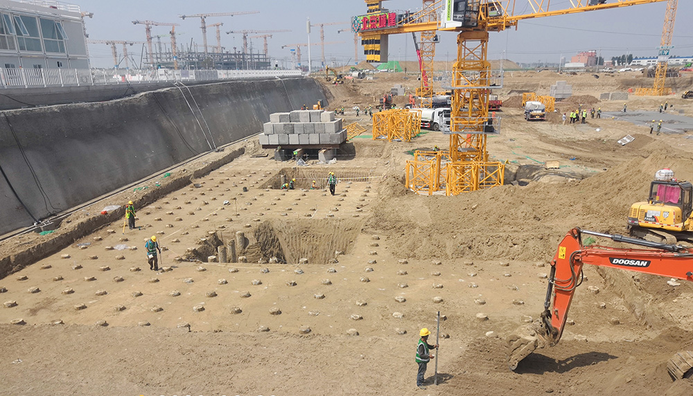 受中國雄安集團城市發(fā)展投資有限公司委托,我公司承擔了雄安新區(qū)容東片區(qū) B1 組團安置房及配套設施項目的土方工程、基坑支護工程(樁錨支護,土釘墻和錨桿(索))、地基處理工程(水泥粉煤灰碎石樁)。
