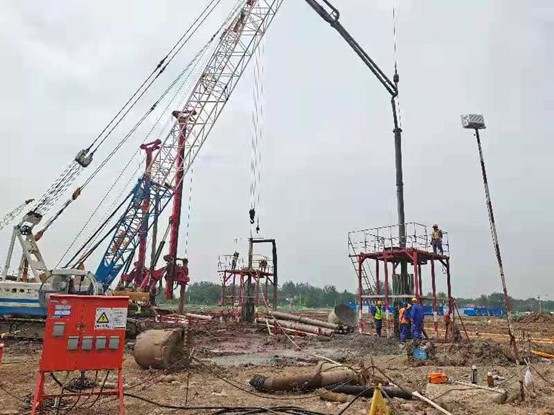 本工程于2021年5月7日開(kāi)工,歷時(shí)72天,兩臺(tái)儲(chǔ)罐于7月13日全部完工。共完成鋼筋混凝土灌注樁600根(包含能源樁240根),廠區(qū)內(nèi)臨時(shí)道路約12000m2,能源樁水平管施工等工作量。
