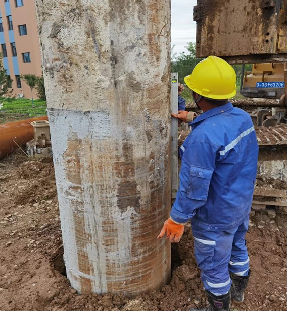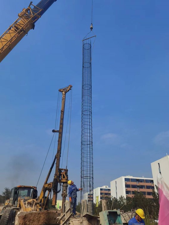 本項目位于河北邯鄲永年縣,受河北永洋特鋼集團有限公司委托,我公司承擔本項目樁基施工。基礎(chǔ)采用混凝土灌注樁,工程內(nèi)容為全套管旋挖機械成孔、清運余土(渣土)、鋼筋籠制作及安放、混凝土澆筑、鑿樁頭、清運及場地平整。工作量為樁徑800mm混凝土灌注樁174根。