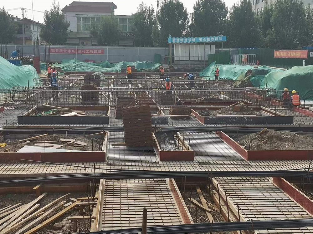 本工程特點(diǎn)如下:①施工場地小,施工材料堆放集中,二次搬運(yùn)多;②施工過程中勞動(dòng)力集中,各專業(yè)穿插作業(yè)多,其中基礎(chǔ)施工時(shí)需3天內(nèi)組織接近200人同時(shí)施工,在新冠疫情影響下組織如此規(guī)模人員短時(shí)間進(jìn)場難度較大;③技術(shù)重點(diǎn)多,項(xiàng)目部經(jīng)過科學(xué)嚴(yán)密的組織和監(jiān)管成功的把控了各個(gè)施工環(huán)節(jié)質(zhì)量,保證工程達(dá)到驗(yàn)收標(biāo)準(zhǔn)。