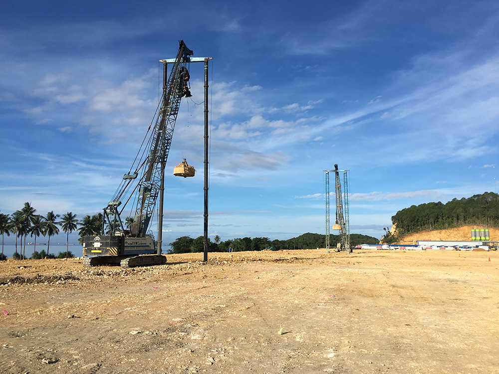 本項(xiàng)目位于印度尼西亞?wèn)|加里曼丹省,由PT.KOBEXINDO CEMENT投資建設(shè),我公司負(fù)責(zé)本項(xiàng)目強(qiáng)夯施工。施工地層由人工填土層、粘土、粉質(zhì)粘土、細(xì)砂、石灰?guī)r組成。