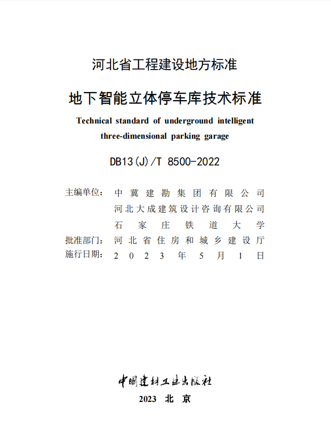 近日,我公司主編的河北省工程建設(shè)地方標(biāo)準(zhǔn)《地下智能立體停車庫技術(shù)標(biāo)準(zhǔn)》(DB13(J)/T 8500-2022)、《污染場地巖土工程勘察技術(shù)標(biāo)準(zhǔn)》(DB13(J)/T 8518-2023)由河北省住房和城鄉(xiāng)建設(shè)廳正式發(fā)布,并印刷出版發(fā)行,分別將自2023年5月1日和7月1日起實(shí)施。