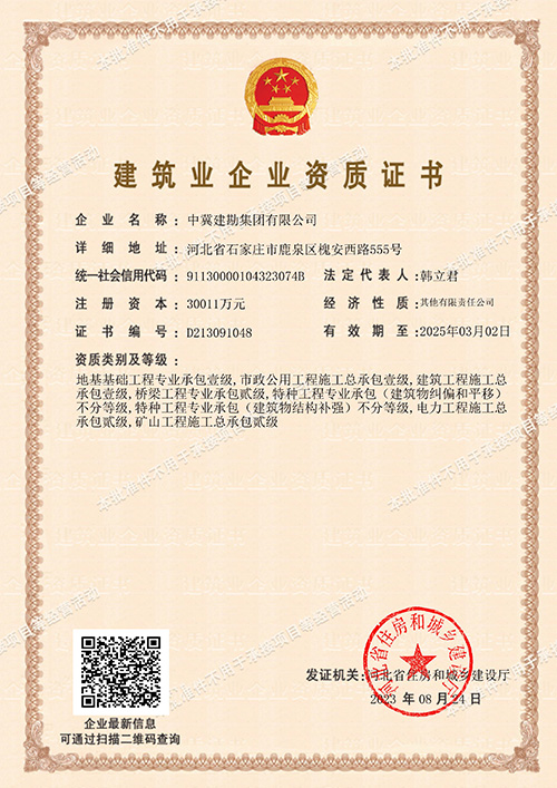 中冀建勘集團(海南)有限公司喜獲建筑業(yè)企業(yè)貳級資質證書