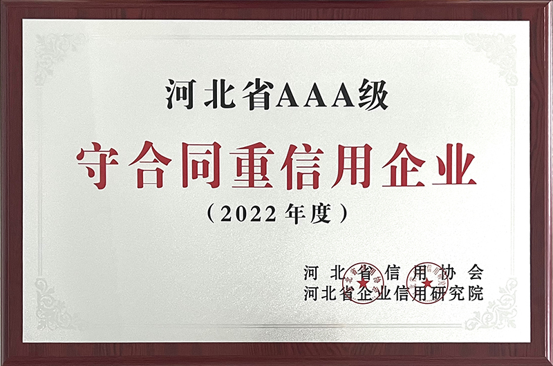 根據(jù)河北省信用辦、河北省信用協(xié)會(huì)等七部門印發(fā)的《關(guān)于開展“推進(jìn)誠信建設(shè)共建信用河北”的活動(dòng)方案》的通知,以及河北省信用協(xié)會(huì)、河北省企業(yè)信用研究院印發(fā)的《關(guān)于2022年度“河北省守合同重信用”企業(yè)申報(bào)認(rèn)定工作的通知》,我公司被評為“河北省AAA級守合同重信用企業(yè)”。