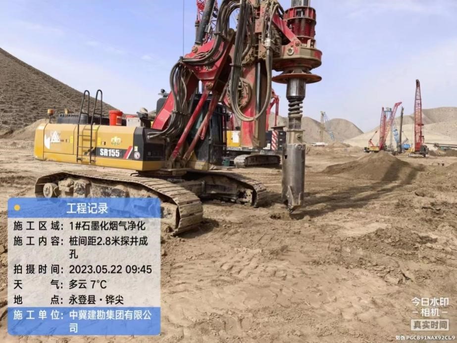 蘭碳一期6萬(wàn)噸碳電極項(xiàng)目SDDC樁施工工程于2023年05月24日開(kāi)工, 2023年6月23日完工。經(jīng)過(guò)SDDC樁處理后,本工程的黃土問(wèn)題得以改善,地基承載能力有所增強(qiáng)。此工藝具有高效、工期短的特點(diǎn)。對(duì)回收的黃土進(jìn)行資源化處理,減少了工程支出。