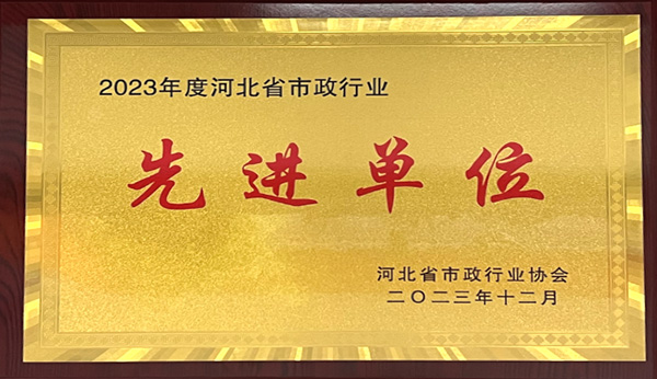 近日,由河北省市政行業(yè)協(xié)會評選,公司榮獲“2023年度河北省市政行業(yè)優(yōu)秀企業(yè)”、 “2023年度河北省市政行業(yè)先進單位”稱號。
