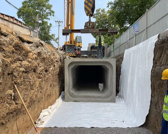 本工程主要施工特點是在保證周邊居民正常生活排水的前提下,在淤泥質(zhì)粉土地層中通過開槽法進行雨污水管道安裝施工。工程于2023年4月20日開工,12月15日完工。通過對淤泥質(zhì)粉土地層的加固處理以及管道安裝施工、接縫處理、回填處理和路面基層施工處理,歷時239天,圓滿完成合同任務(wù),經(jīng)第三方檢測,合格率100%。目前申報了三項實用新型專利,一項實用新型工法。