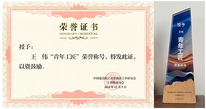 經(jīng)公司積極申報推薦,中國建設(shè)職工思想政治工作研究會工程勘察分會嚴(yán)格審核,一公司經(jīng)理王偉同志榮獲“青年工匠”榮譽(yù)稱號。
