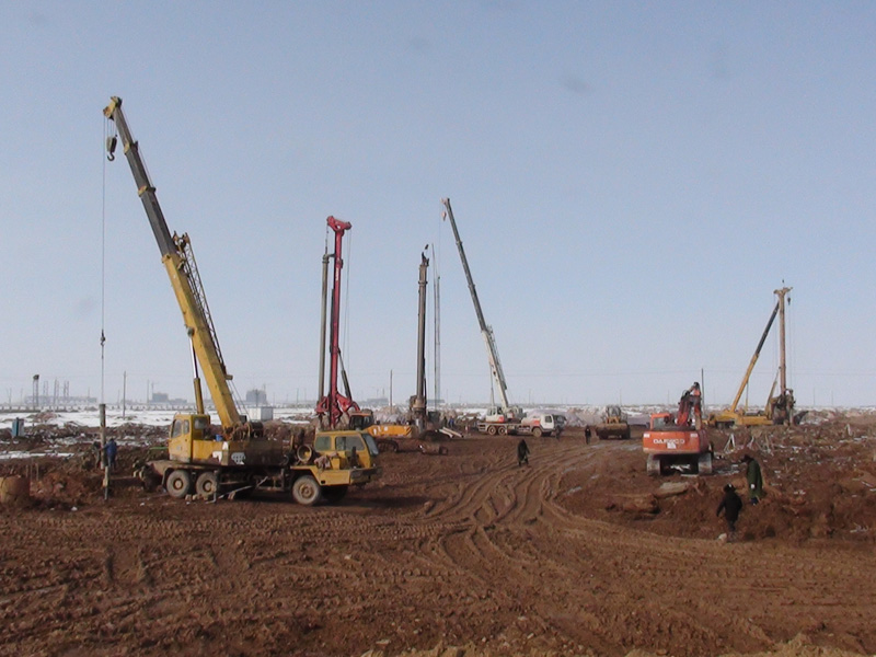 我公司共完成850根旋挖鉆孔灌注樁,樁徑為Φ800mm,樁長(zhǎng)28~33m,完成混凝土方量約14000m³。